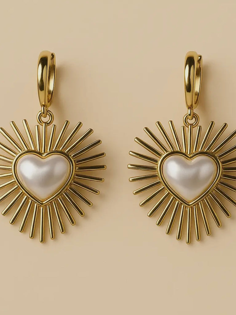 These earrings are bursting with love. Featuring a pearl center and huggie style closure.