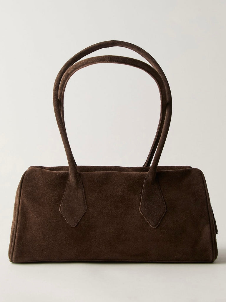 This totally tubular shoulder bag features signature FP Collection vintage-inspired touches in an all-over suede fabrication with an interior zipped pocket for special storage.