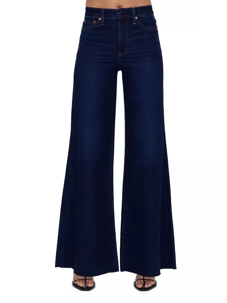 Get ready to do the hustle in these '70s-inspired stretch-denim jeans cut in a groovy wide-leg silhouette with an exaggerated flare ending in raw hems.