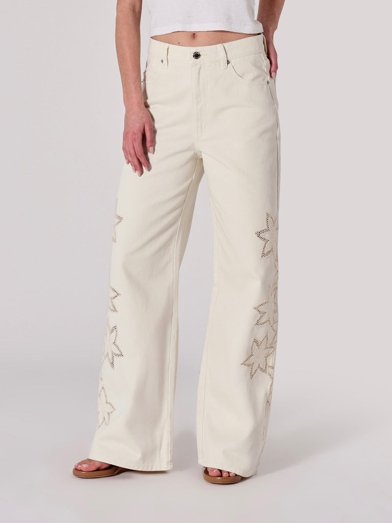Relaxed Sailor is a high-rise, wide leg jean, made with a non stretch denim. Fits true to size.