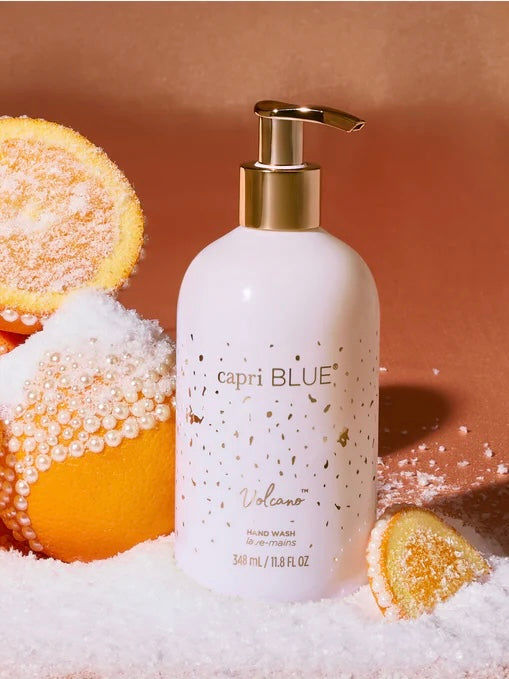 Your sink’s new obsession. Our Volcano Glimmer Hand Wash pairs a hydrating, plant-based glycerin formula with sugared citrus and tropical fruit notes for a fresh, seasonal upgrade. Finished in a luxe gold glimmer finish, this vegan, cruelty-free hand wash doubles as holiday décor.