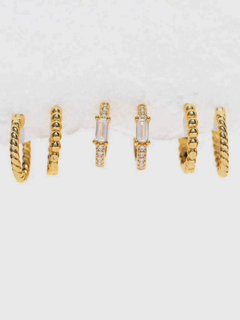 Indulge in your California fantasies with this hoop set. Become the star of your own show and choose the huggie hoop pair that perfectly matches your vibe for the day! With three captivating options to choose from, you'll have the freedom to unleash your inner style icon every day.