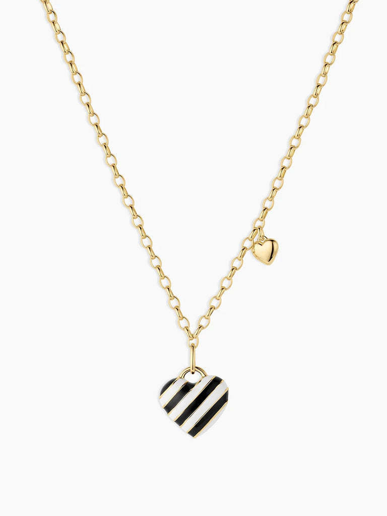 This bold striped heart necklace is all about color, confidence, and not taking things too seriously. Featuring graphic stripes and vibrant hues, it brings a fresh, feel-good energy to your stack—this necklace provides an instant mood-lift and a welcome break from solid metal styles. Designed to stand out without trying too hard, this piece is playful, expressive, and meant to be worn on repeat, whether you’re dressing up a simple look or leaning fully into the fun.