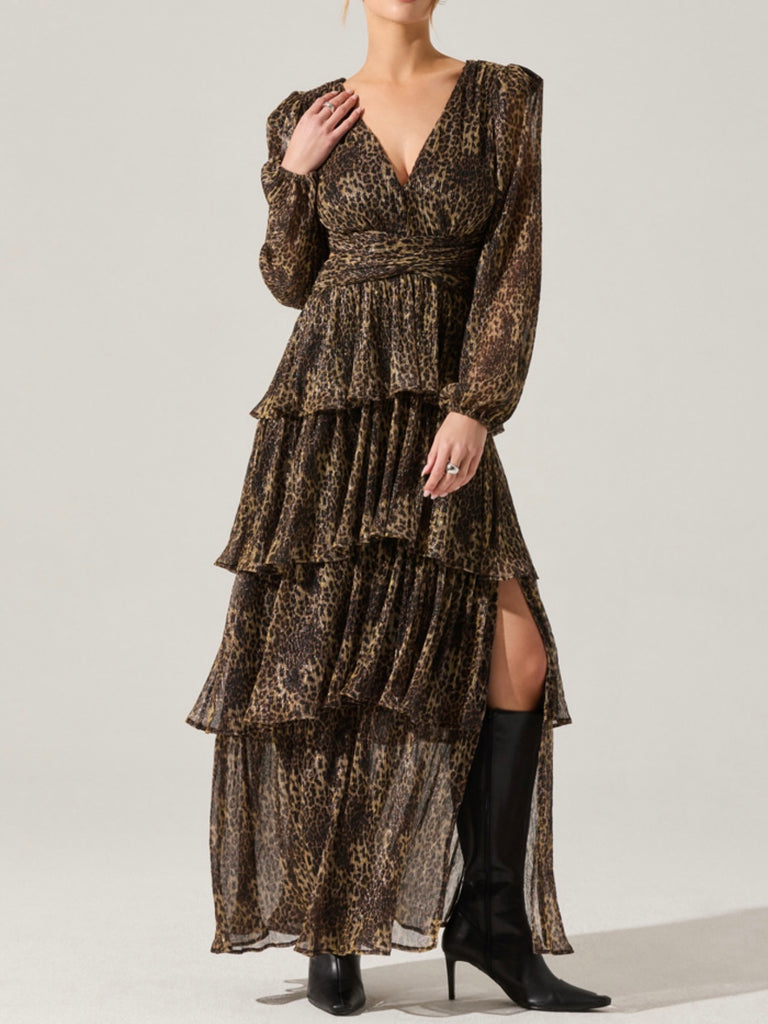 Flattering and feminine, this tiered maxi dress was designed to elongate the figure and add dimension with the statement sleeve and open back. Whether you're headed to a fall wedding, a sunset dinner or a weekend escape, this dress brings effortless charm and elevated style.