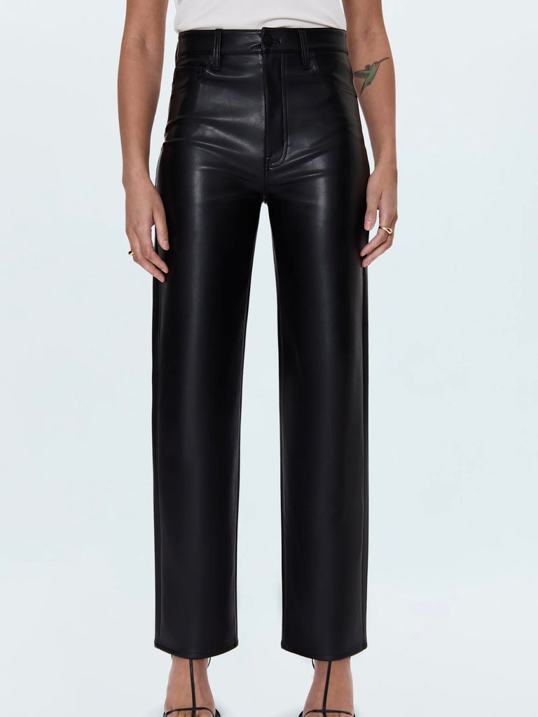 The best-selling straight leg that gets it right. Cassie's super high rise creates a sculpted silhouette that's both commanding and comfortable. The classic straight leg falls to a full-length hem, finished with a 31" inseam for a timeless fit. Crafted from alternative leather in Onyx, a rich black finish.