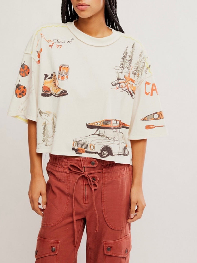 Take a hike in this elevated staple tee from the We The Free collection, featuring a lightweight cotton fabrication, a boxy, slightly oversized silhouette, and camp-inspired graphics for a folksy feel.