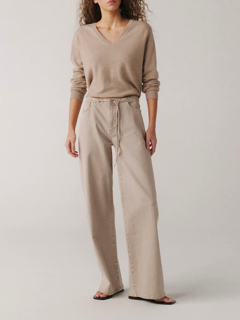 Inspired by the laid-back ease of New Orleans, The Big Easy is a relaxed, mid-to-low rise wide-leg jean with an adjustable drawstring instead of a traditional denim waistband. Lightweight, breathable, and effortlessly cool — The Big Easy is the perfect everyday women’s denim for warm days and beyond.Sand Dollar is an overdyed beige denim with a relaxed drawstring waistband, brushed silver hardware, and tonal stitching for easy neutral styling.