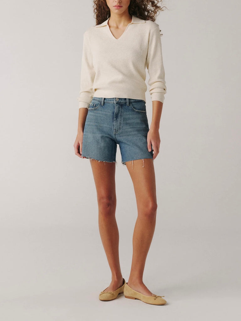 Meet VVI, the vintage-inspired denim short made modern. Designed with a high rise, this pair delivers that authentic broken-in look with a hint of stretch for all-day comfort—no pinching, no gaping, no rigid break-in period. Effortless, flattering, and ready for warm days on repeat.Earth Mother is a mid-wash denim with a raw hem, pocket grinding, vintage hardware, and dark contrast stitching for rugged authenticity.