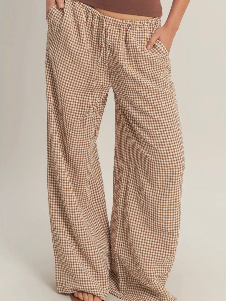 A cool, casual pant for spring. This style features a thin drawstring waistband with side seam pockets. Pair back with a graphic tee, lightweight spring sweater, or a baby tank.