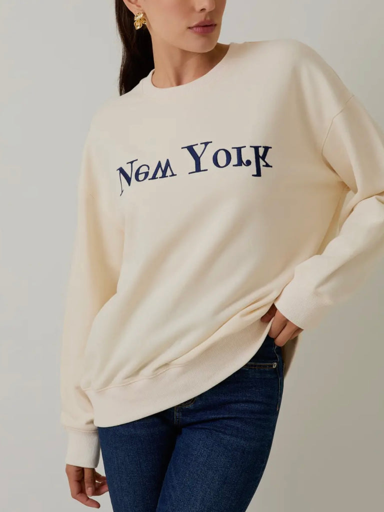 It will always be New York or No Where, right? This easy sweatshirt features an oversize fit, soft hand, and embroidered graphic.
