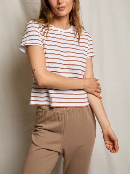 Everett Boxy Crewneck Tee in Mocha Stripe