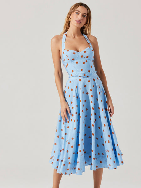 Janie Top in Blue Rust Polkdot