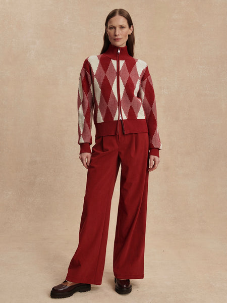Karina Jacquard Knit Jacket in Red Dahlia