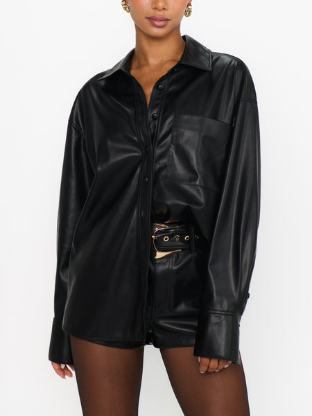 Lincoln Shirt Jacket in Black Faux Leather