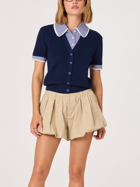 Marlee Mixed Media Cardigan in Navy Plaid
