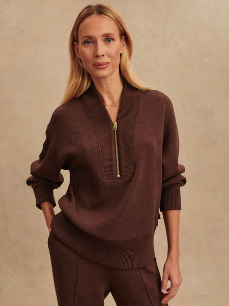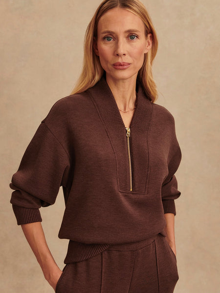 Sally Half Zip Sweat in Coffee Bean Marl