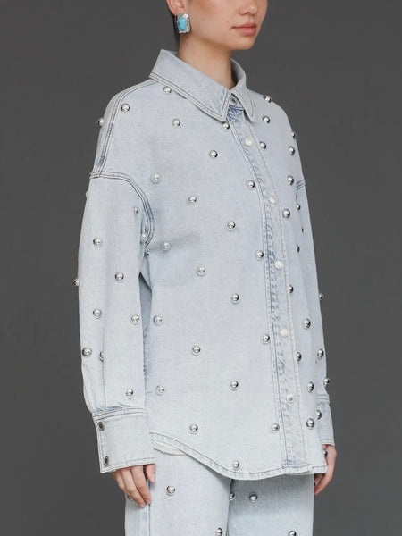 Studded Denim Shirt Jacket in Fjord Wash