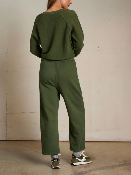 Zuri Reverse Fleece V Neck Sweatshirt in Fern Green